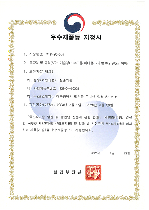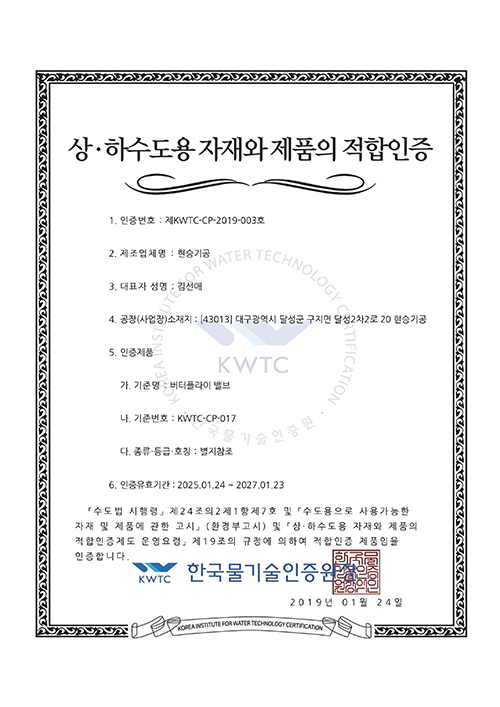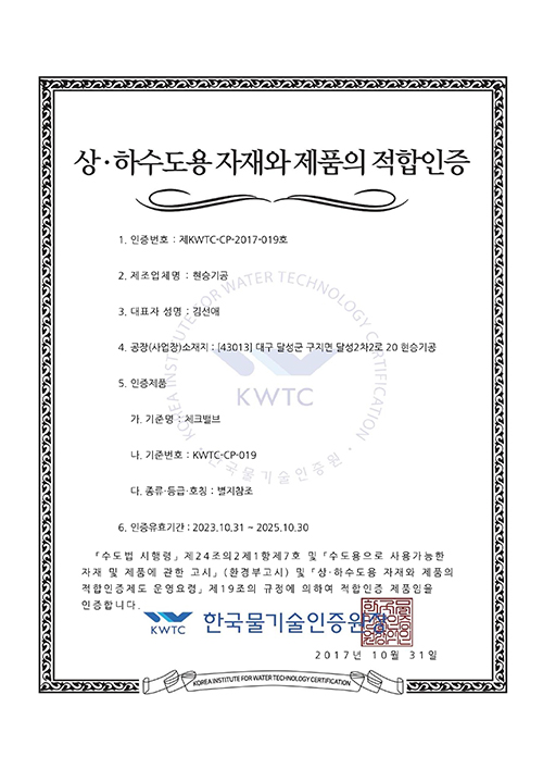 제품소개 밸브 버터플라이 밸브 체크 밸브 볼 밸브 플랩 밸브 스테인리스 게이트 신축관이음 콘 밸브 할로우 제트 가드 게이트 제트 플로우 게이트 수문/권양기 주철 수문(각형 / 원형) 슬라이드 게이트 롤러 게이트 권양기 밸브실 수처리 기자재 제진기 가동보 교반기 스테인리스 이형관 드레셔 커플링 자료실 카달로그 메뉴얼 시방서 인증서 설비현황 회사소개 회사개요 회사연혁 조직도 경영이념 오시는길 게시판 전시회 및 행사 시공사례